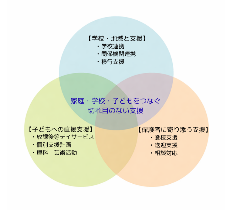 | ⑦ 家族支援 | 保護者相談、登校・送迎支援など家庭全体への支援 |